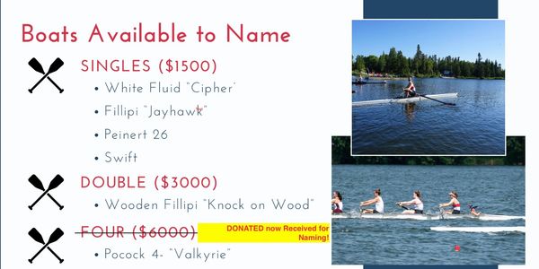 Naming a rowing shell, is a unique tradition & opportunity in the rowing community! Shells can be named in honor of/ in memory of an individual, or any special sentiment or theme!